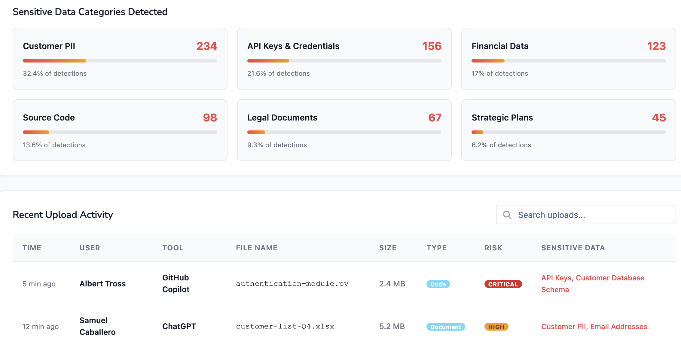 authentication-module.py or customer lists in real-time.(Matches your "Sensitive Data Categories Detected" screenshot)