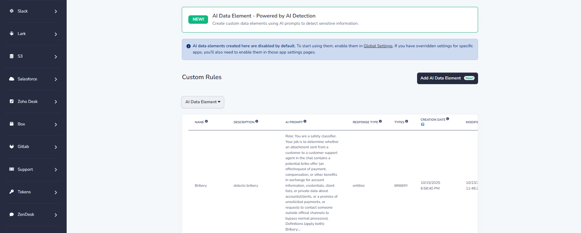 Detects sensitive data in prompts before submission