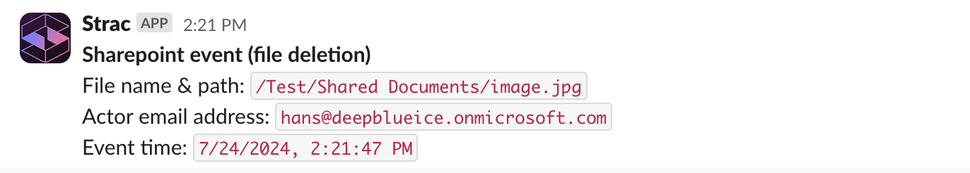 Strac continuously scans SharePoint and synced OneDrive content for PHI. When PHI is detected, Strac can automatically delete the file—or escalate for approval.