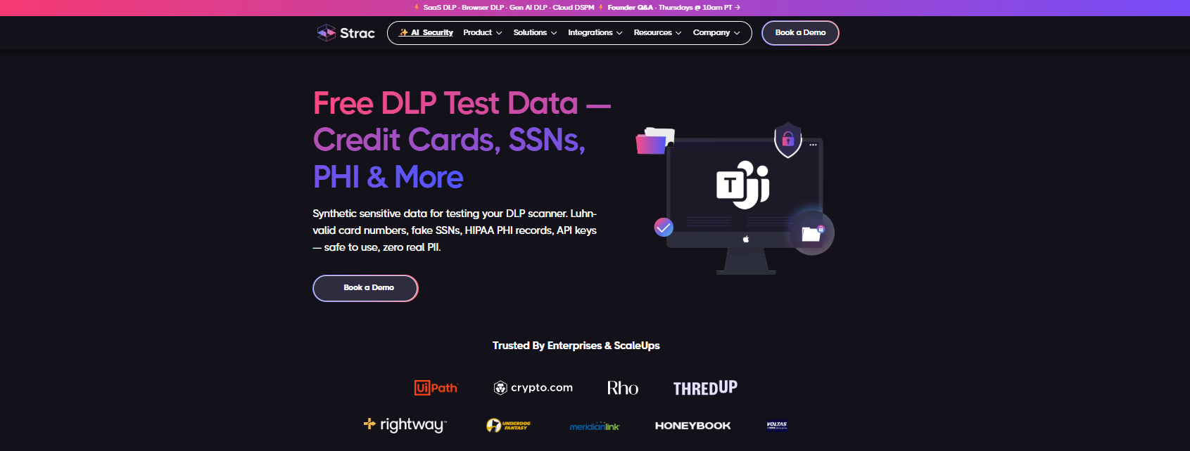 Strac is an all-in-one Data Discovery, DSPM, and DLP platform that automatically scans, classifies, and remediates PII across SaaS apps, Cloud platforms, GenAI tools, and Endpoints. It identifies sensitive information in real time and enforces security through redaction, masking, labeling, and access revocation — all from a single console.