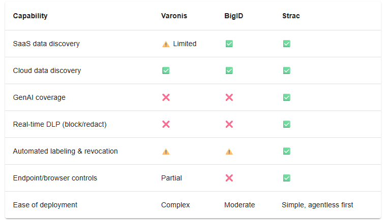 Why Strac wins the “Varonis Alternatives, Varonis Competitors” search