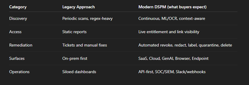 Why legacy vendors miss vs what modern DSPM includes